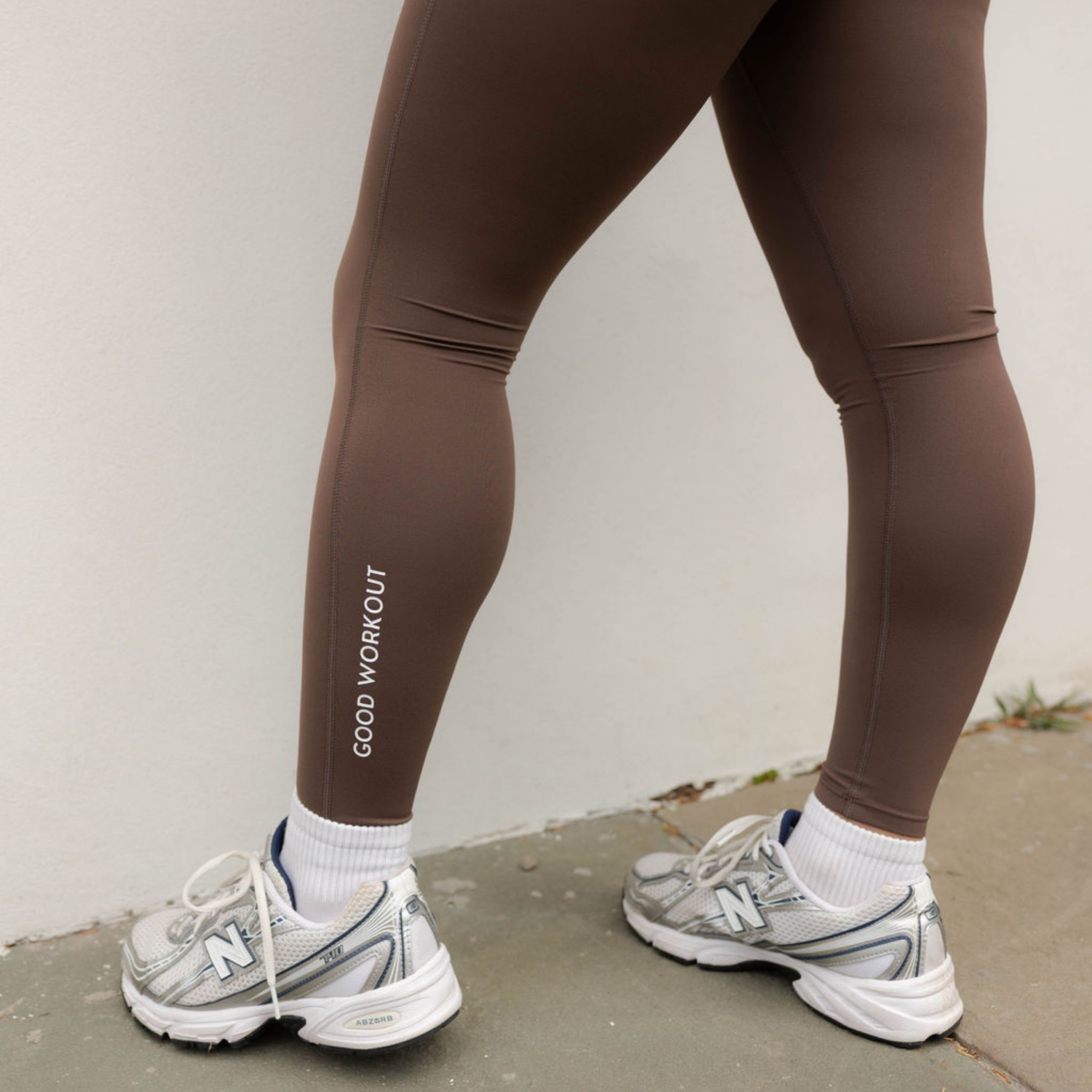 Features GOOD WORKOUT logo along the calf